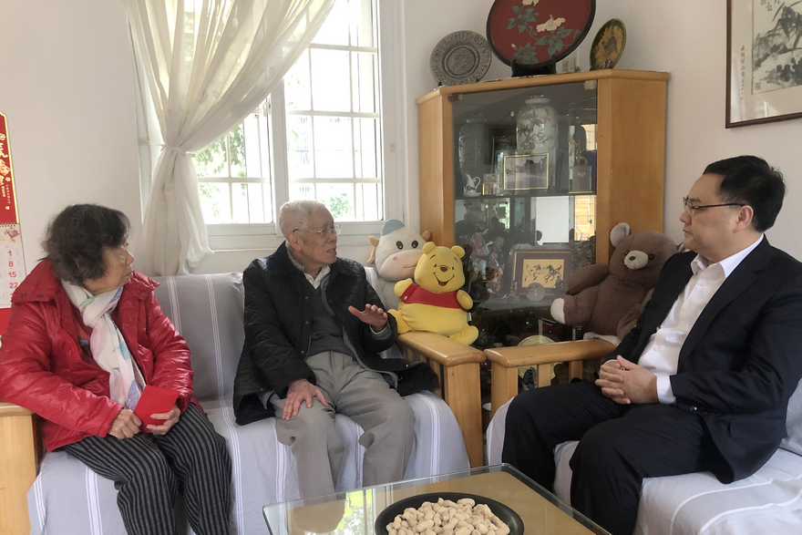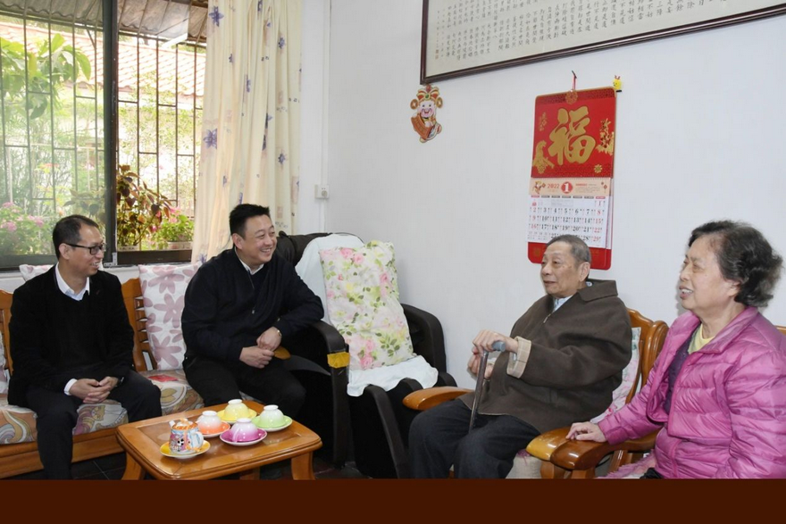 本网讯 2022年春节前夕,校党委书记隋广军、校长石佑启、校党委副书记李云明、校党委副书记唐锐、校党委常委胡文涛等在党办校办、组织部、统战部、离退休处主要负责人陪同下,以走访和座谈等形式慰问了我校老干部、老教授、老党员、党外人士代表、外派干部代表等,送上新春祝福,共话学校新发展。