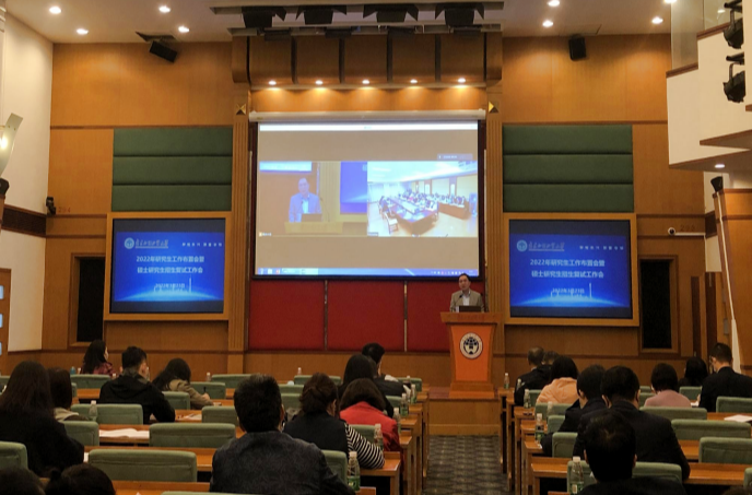 研究生院院长杨励从学科点建设再上新台阶、生源数量和质量提升、高质量成果产出、建设卓越研究生导师队伍、多渠道构筑国际化育人新模式等五个方面总结了2021年研究生教育工作,同时提出了2022年研究生教育工作的六个着力点:一是要多措并举深化招生改革,优化研究生生源质量;二是要强化课程教学育人体系,凝练人才培养创新特色;三是要服务国家发展重大需求,打造国际化人才培养体系;四是要构建导师考核评价体系,培育卓越研究生导师队伍;五是要因应社会发展需求,持续优化学位点布局;六是要抓住人才培养关键环节,强化教育质量过程监督。对即将进行的2022年硕士研究生复试工作,杨励就组织与管理、复式方式、复试办法、成绩计算、录取办法、纪律要求等关键工作环节进行了布置。