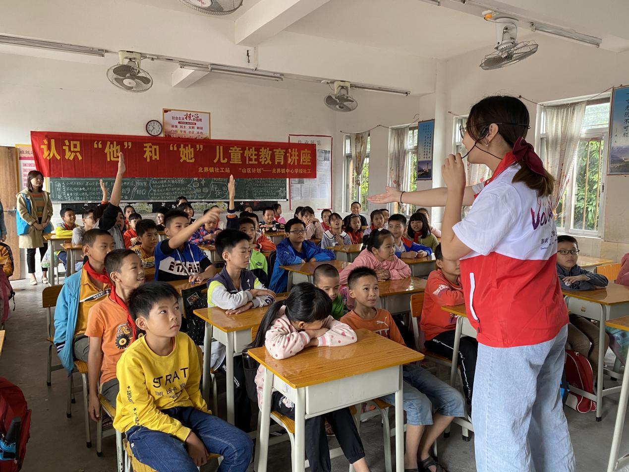 如果把支教经历比喻成建造一座高楼,那么朱慧伶的专业所学就是坚实的地基。“我认为社工教师不只是心理老师。乡村孩子们的社会互动少,不懂得怎么与他人沟通交流。这也是我们需要突破的重点。”于是,在“社工课堂”的设计上,朱慧伶结合社会工作的专业积累,为北界镇的学生们提供了普法、历史、情绪管理、生命教育和感恩教育等课程,让孩子们在课堂中学会表达自我、沟通他人,建立自己的社会网络。