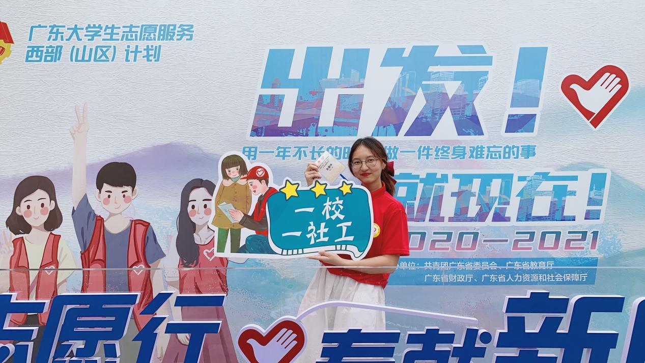 朱慧伶,中共预备党员,我校社会工作专业在读硕士研究生、广东大学生志愿服务西部(山区)计划“一校一社工”专项志愿者。获评中国青年志愿者优秀个人奖、2021年“广东向上向善好青年”、广东省五星志愿者、广东外语外贸大学校长奖章等。2020年8月,她休学一年参加山区计划“一校一社工”项目,服务于茂名信宜市北界镇。她在当地学校开设的社工课堂超过百节,为孩子们提供专业的驻校服务和心理支持,服务了近3万人次,链接资源支持建立8所村小图书室,策划开展关爱留守儿童课堂及活动100余场。