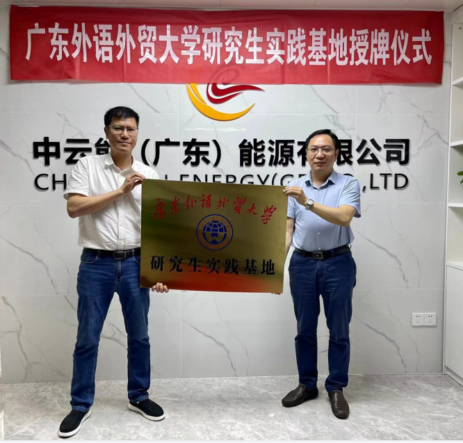 本网讯 4月27日上午,我校与中云能(广东)能源有限公司研究生实践基地挂牌仪式在南沙中云能(广东)有限公司举行。我校副校长刘海春,中云能(广东)能源有限公司总裁蔡旭辉、总经理黄楠森、发展顾问彭木裕,我校研究生院(部)、学生就业指导中心、经济贸易学院相关负责人等出席挂牌仪式。