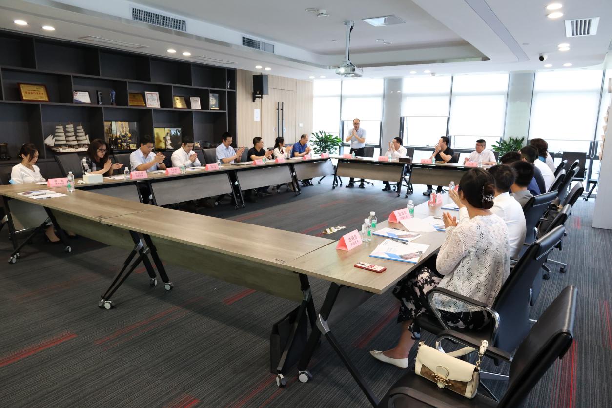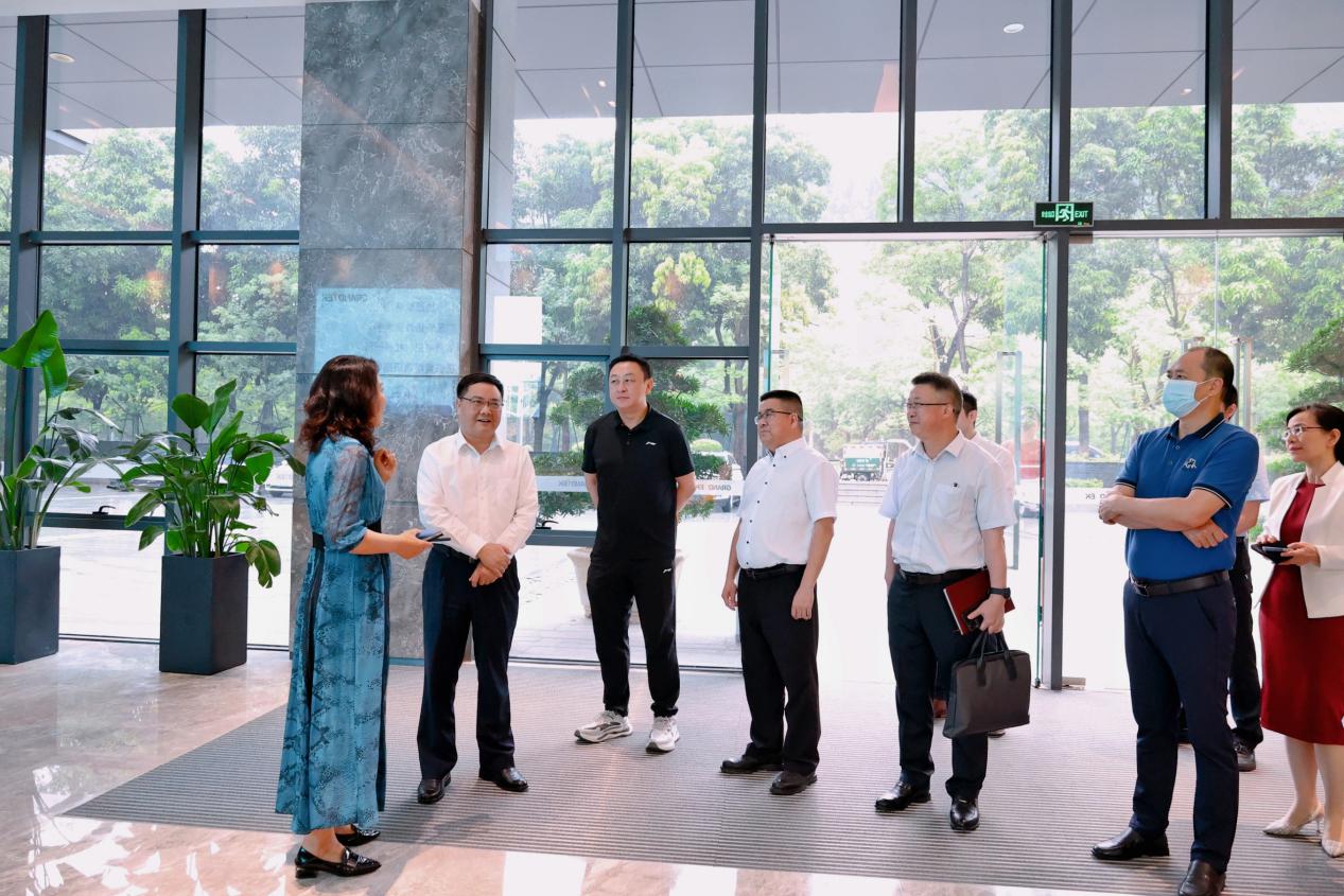 石佑启一行在黄埔区芯大厦参观建智控股集团有限公司,公司副总裁、黄埔校友会副会长、97级日语专业校友刘叶介绍了公司的发展历史和业务板块。