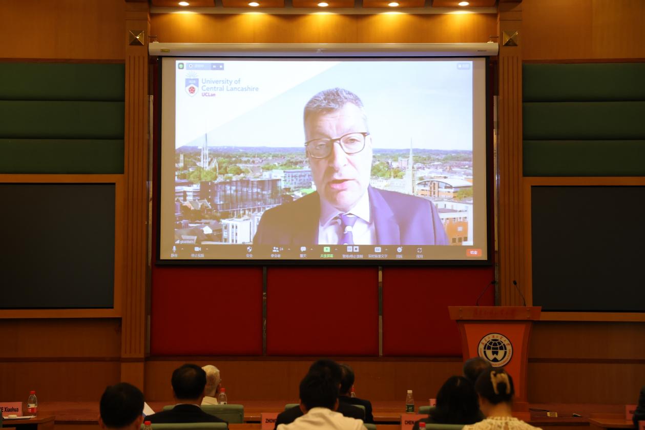 焦方太,广外原校长黄建华,广外原副校长、国际学院办学督导陈林汉,广外原国际商务管理学院院长黄伟新等也分别致辞,共同回顾项目的创办和发展历程。国际学院院长梁学宏,教师代表、国际学院副院长杨文慧以及校友代表、国际学院校友会秘书长古璇也分享了自己参与合作项目以及在兰开夏学习的心得体会。
