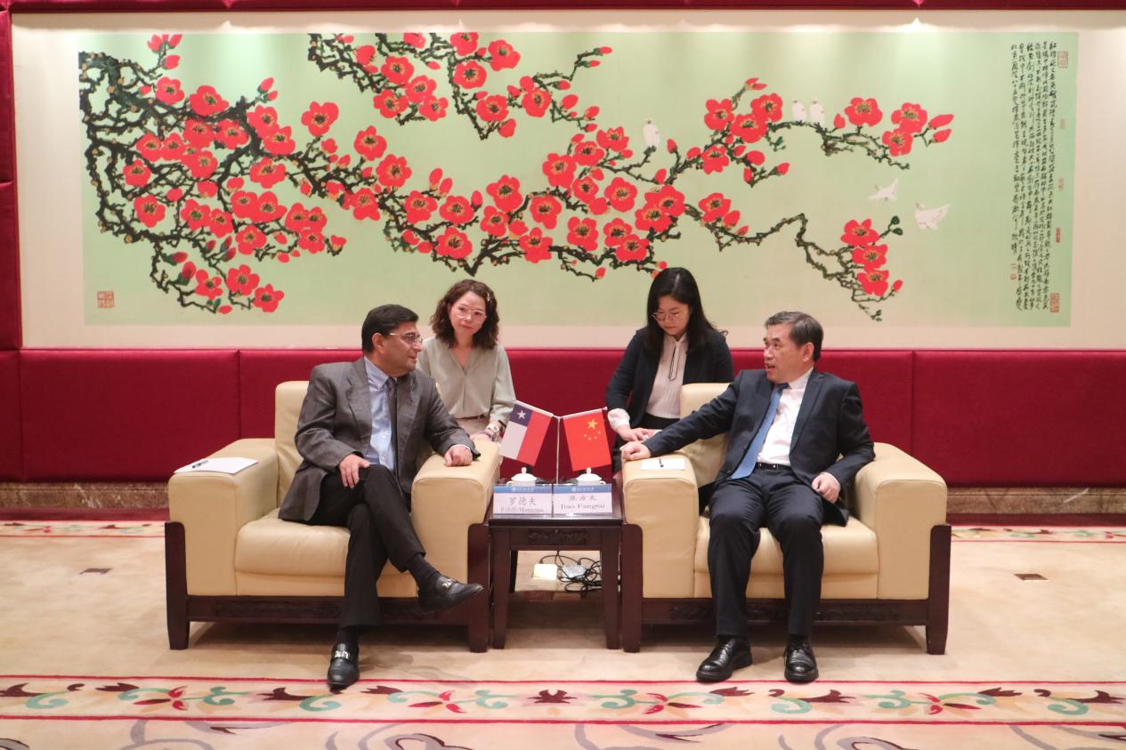 国际合作与交流处、国际治理研究院等相关单位负责人参加会谈。会后,智利驻广州总领事馆代表团与西方语言文化学院等单位进行具体项目合作洽谈。