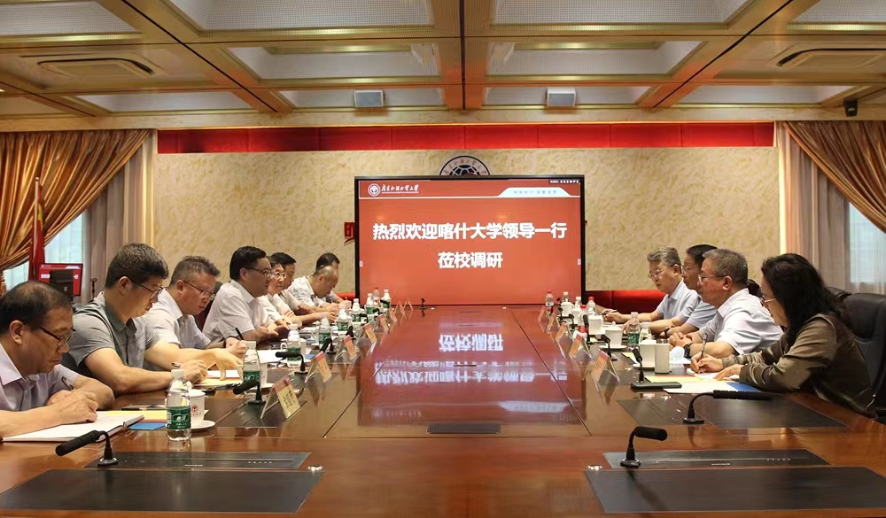 本网讯 6月29日,喀什大学党委书记薛继海、副校长杨清华、赵斌等一行来校调研。我校党委书记、校长石佑启,党委副书记李云明和相关职能部门负责人在行政楼第一会议室与喀什大学一行座谈交流。