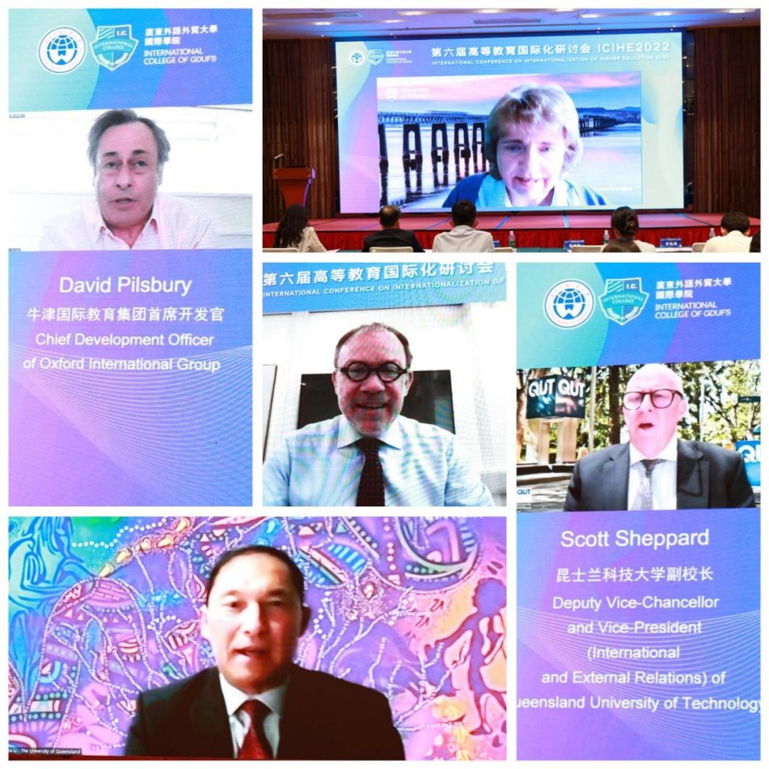 出席研讨会的还有广外原副校长、国际学院办学督导陈林汉,广外国际合作与交流处处长柯晓华、教育学院院长董金伟、英文学院教授欧阳护华以及包括澳洲昆士兰大学、昆士兰科技大学、纽卡斯尔大学,英国考文垂大学、邓迪大学、兰开夏大学、莱斯特大学等19所国外合作院校领导与嘉宾出席。研讨会线上线下同步进行,开幕式由国际学院院长梁学宏主持。