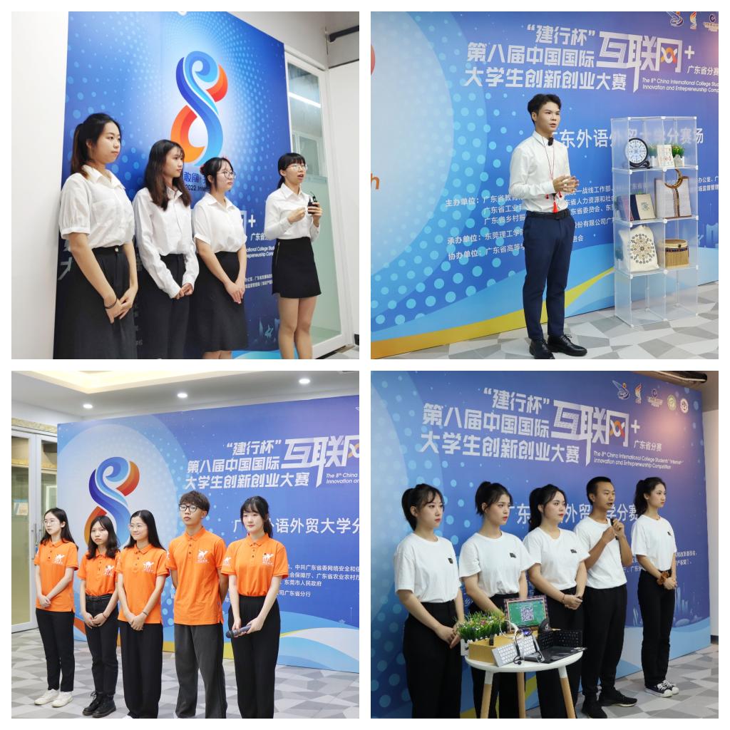 我校第八届“互联网+”校赛于今年3月份启动,全校共计1402个学生项目、8300学生人次参赛,参赛项目类别与学生专业覆盖学校八大学科门类的68个本科专业,基本实现了以创新创业赛事为抓手,促进专业教育与创新创业教育相融合。我校走出了文科院校创新创业教育的差异化发展道路,充分体现学校外语学科与非外语学科“双轮驱动、协同发展”的学科特色。本次获金奖的4个项目,“译心筑梦”团队以多语言为核心技术,助力南粤古驿道文化传播;“权易邦”团队依托我校法学学科、特别是涉外法学优势,聚焦于小额诉讼领域,为用户提供多语言法律服务;“木木科技”团队通过与家庭经济困难学生共同创业、一起成长,助力贫困生成才立业;“瑶篮”团队发挥多媒体营销的专业特长,助力国家级非物质文化遗产“瑶族刺绣”的传承与发扬。