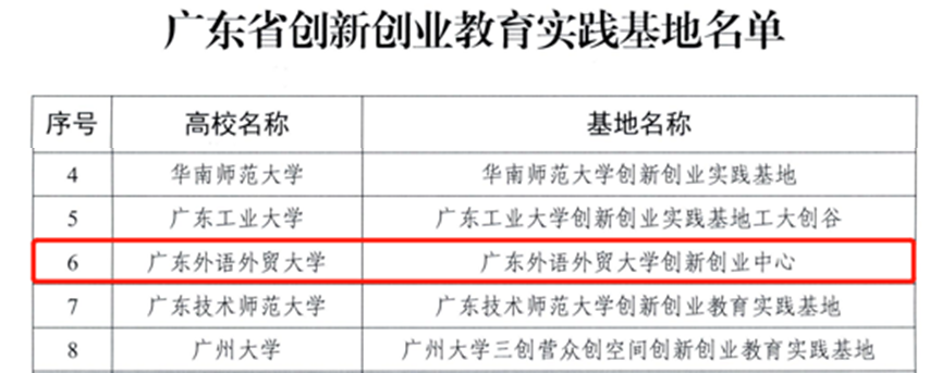 本网讯 近日,接《广东省教育厅关于公布广东省创新创业教育实践基地名单的通知》,我校创新创业中心获评广东省创新创业教育实践基地。全省共遴选了20个省级实践基地,其中省属本科高校5个。