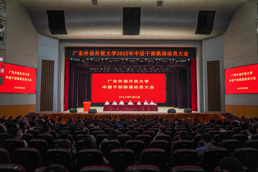 本网讯 9月8日下午,2022年中层领导人员换届动员大会在白云山校区云山会堂举行。我校党委书记、校长石佑启作动员报告,对本次换届工作提出要求。会议由党委副书记唐锐主持。校领导、校党委委员、校纪委委员、全体中层干部、科长以及高级职称专业技术人员、各级人大代表、政协委员、各民主党派负责人、离退休人员等各类代表参加会议。