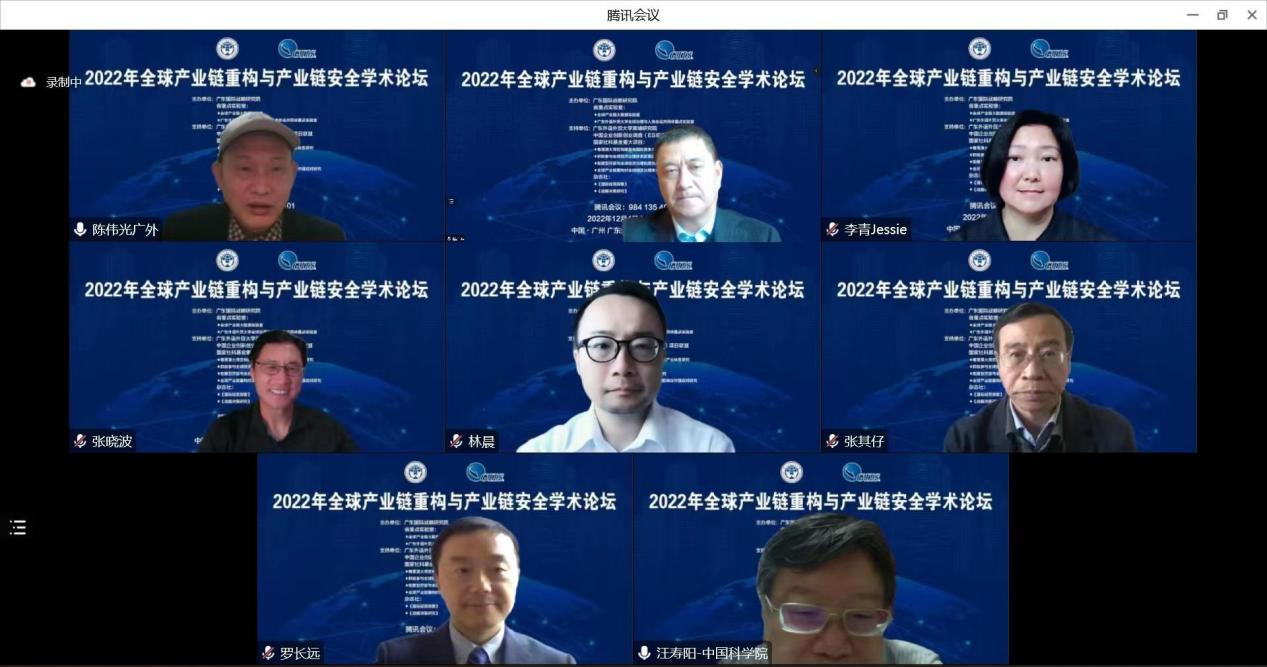 本网讯 12月4日,由广东国际战略研究院、我校黄埔研究院、全球产业链大数据实验室、省社科联全球治理与人类命运共同体重点实验室联合主办的2022年全球产业链重构与产业链安全学术论坛在我校举行,来自国内外的专家学者160多人以线上方式,围绕全球供应链与产业链的安全稳定、构建现代产业体系、发展区域化产业集群等重大问题展开深入研讨和交流,为切实维护我国产业链供应链安全稳定提供了破题思路。