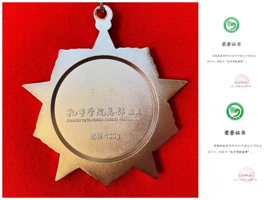 肖旭、王龙被授予“孔子学院奖章”