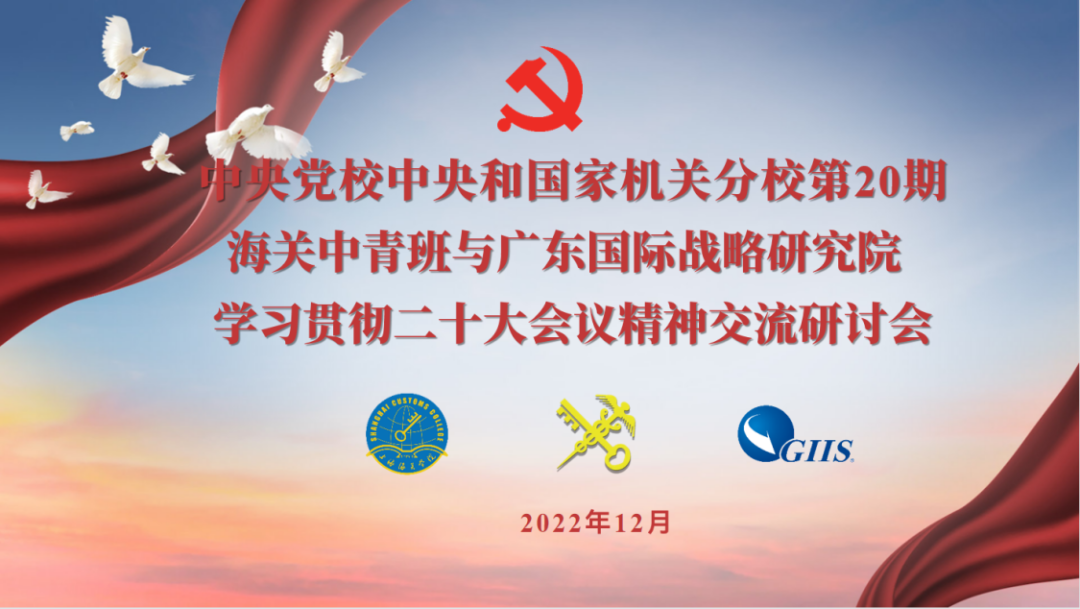 本网讯 近日,广东国际战略研究院与中央党校中央和国家机关分校2022年秋季学期海关党校处级干部进修班通过视频连线方式开展联学联建活动,共同学习党的二十大精神,学习党的经济理论与党中央关于最近经济形势的分析,并以“推进高水平对外开放,推动货物贸易优化升级,加快建设贸易强国”为主题开展了深入研讨。研讨会被人民日报等主流媒体报道。