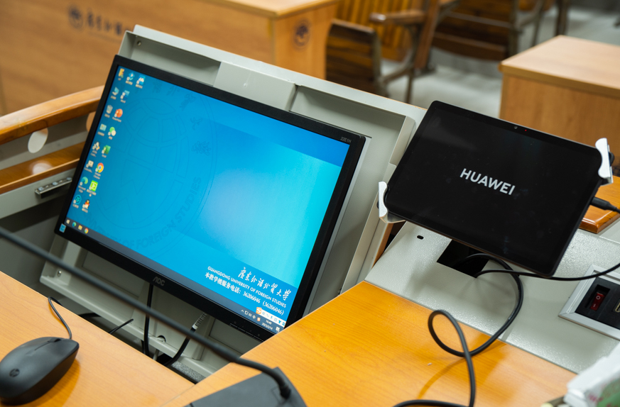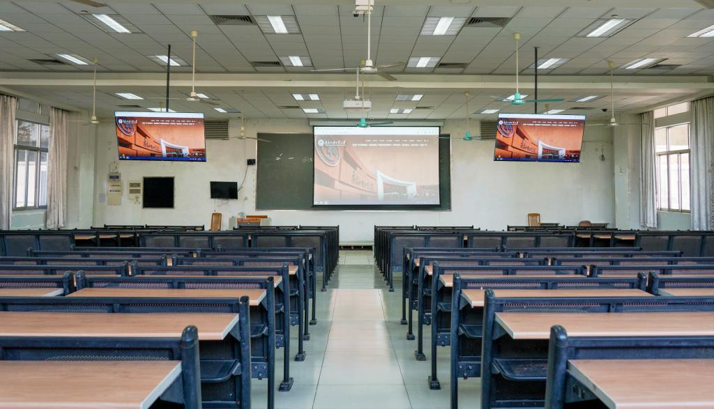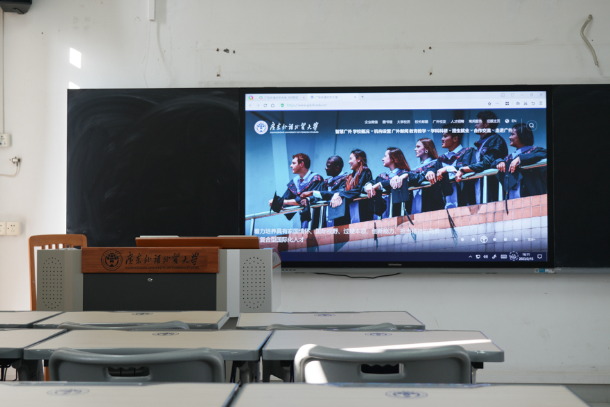 据相关工作人员介绍,本次教学设备升级工作利用了多媒体交互领域最前沿的技术,系统从硬件到软件的设计中都考虑了师生的需求,旨在丰富教学的手段和教学的内容,带给学生更加生动的课堂感受、高效的学习环境和浓厚课堂教学氛围。改造范围包含小、中、大、超大四类课室,小型教室均安装最新一代智慧黑板,智慧黑板为4K电容触控屏幕,采用超高清显示和低蓝光背光技术,能够减轻同学们的用眼负担;中大型教室投影设备改用流明激光投影机,能够让投影设备使用寿命延长,光源色彩还原准确,具有亮度稳定、显示清晰的特点;在超大课室左右两边新增两个高清显示器,所有教室全部配备定制一体化讲台,具有平板控制、投影幕升降等多种功能,更换新的音响设备和配备无线话筒。