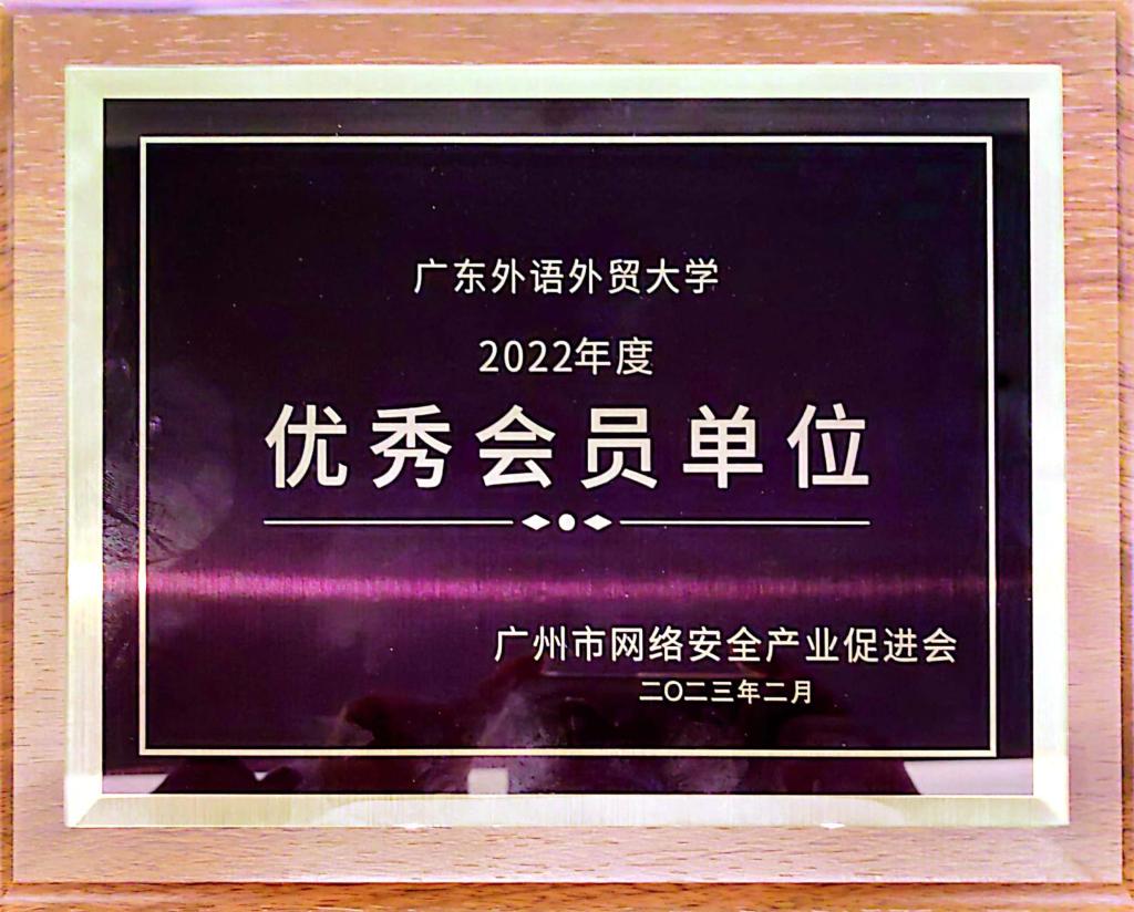 本网讯 2月14日,广州市网络安全产业促进会第一届第四次会员大会在广州举行。广州市网络安全产业促进会会长、广州市委网信办副主任贺忠出席大会并讲话。本次大会颁发了2022年度优秀会员单位牌匾,我校是获此殊荣的广东省内唯一一家高校单位。我校信息科学与技术学院、网络空间安全学院副院长谢柏林出席授牌仪式。