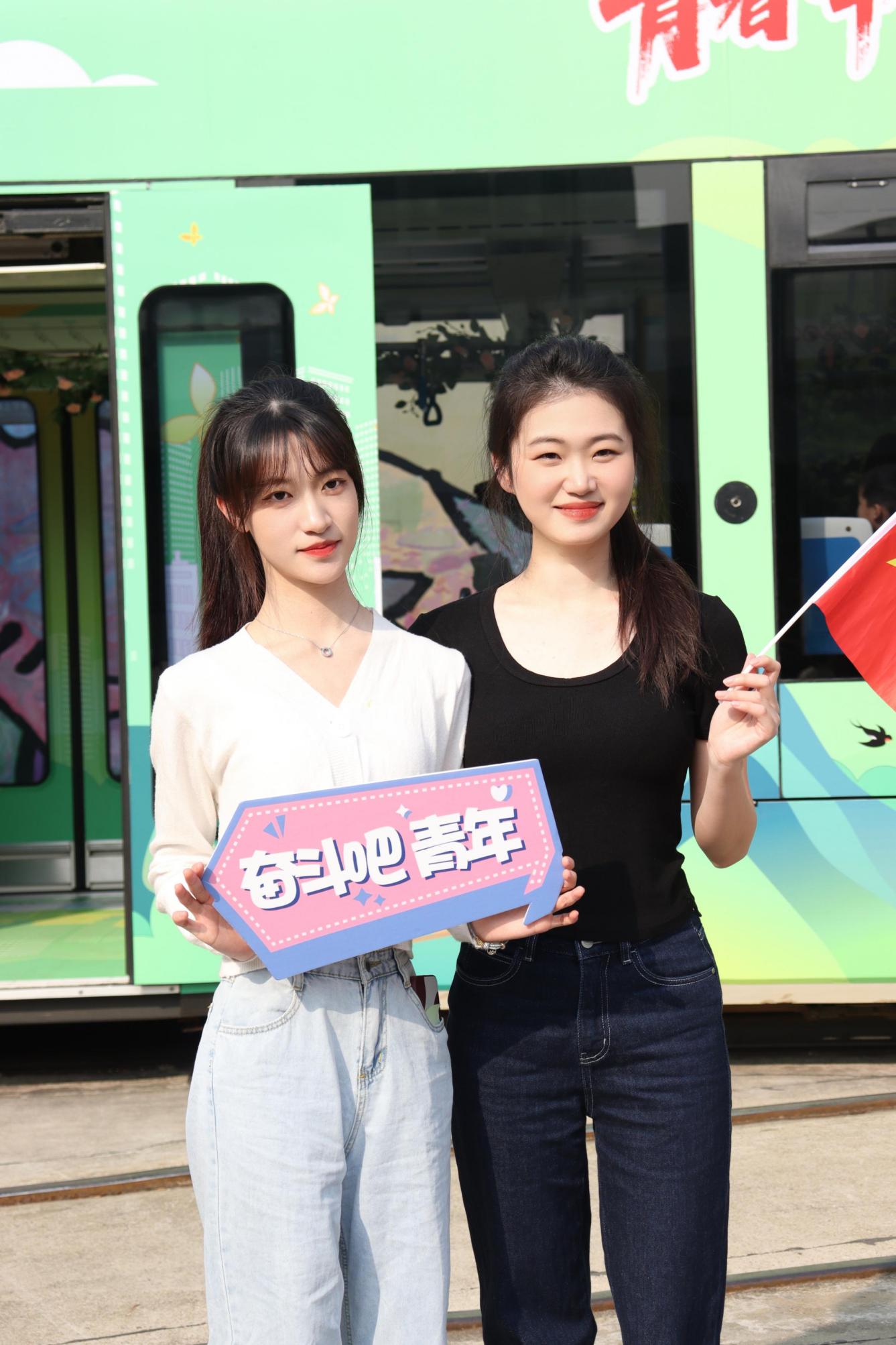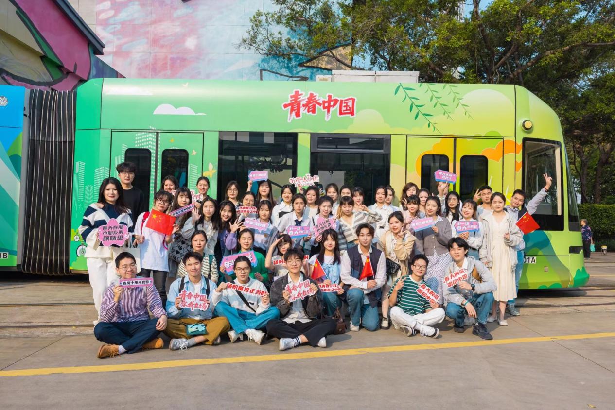 本网讯 广州塔下,明媚的阳光伴随着浪漫的“青春号”有轨列车,穿过车水马龙的繁华闹市,驶过春意黯然的珠江江畔,满载着热情与美好……这一切都成为了花城一道靓丽风景线。3月13日,由人民日报和共青团中央,共同开展的“我的青春主场”系列主题活动上线,我校选派23位学生参与“青春号”专列快闪视频录制。