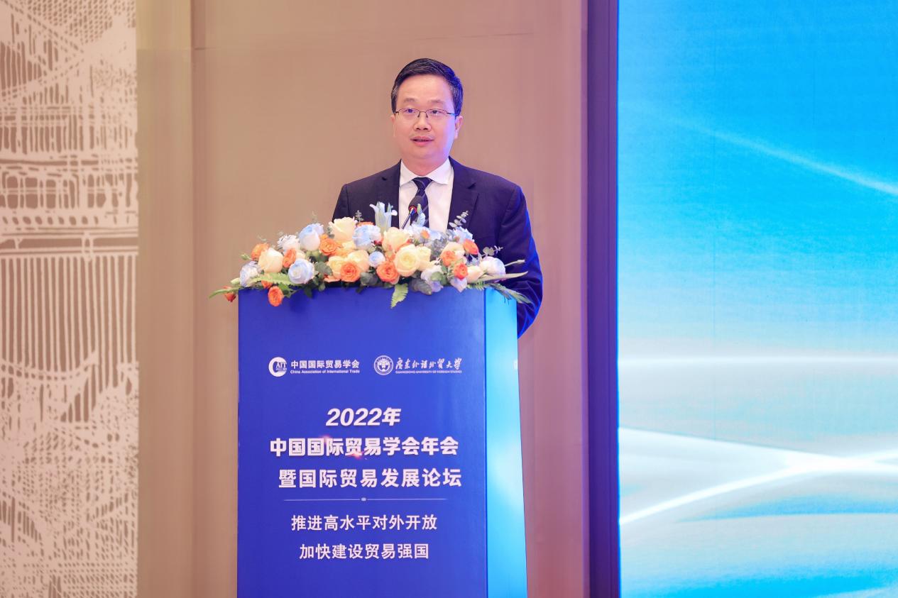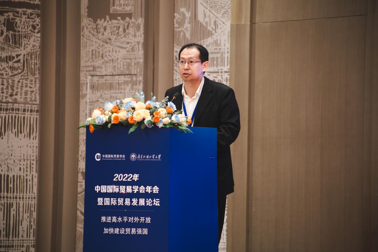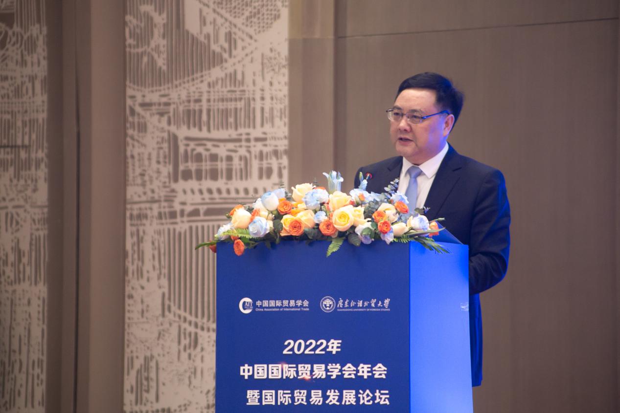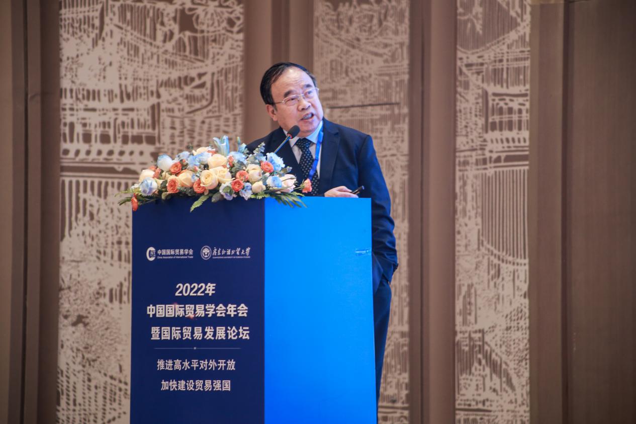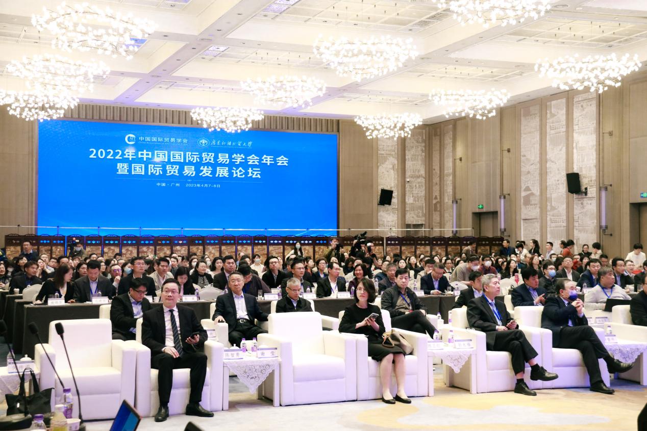 本网讯 4月8日,主题为“推进高水平对外开放,加快建设贸易强国”的2022年中国国际贸易学会年会暨国际贸易发展论坛在广州举行。商务部原副部长、WTO原副总干事易小准,国务院发展研究中心原对外经济研究部部长赵晋平等应邀做专题演讲。中国国际贸易学会会长金旭、副会长兼秘书长边振瑚、副会长李钢,我校党委书记、校长石佑启,副校长何传添出席会议。来自相关政府部门、各高校及研究机构的专家学者,部分省市国际贸易学会的负责人、国贸学会兼职副会长单位及会员单位代表、2022年中国外经贸发展与改革征文获奖代表等200多人参加会议。