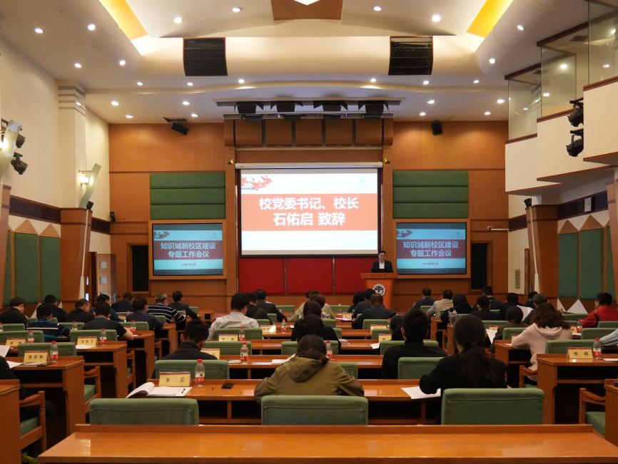 本网讯 4月10日下午,知识城新校区建设专题工作会议在白云山校区国际会议厅召开。校党委书记、校长石佑启作动员讲话,知识城新校区建设各专项小组成员出席会议。会议由校党委常委、副校长刘海春主持。