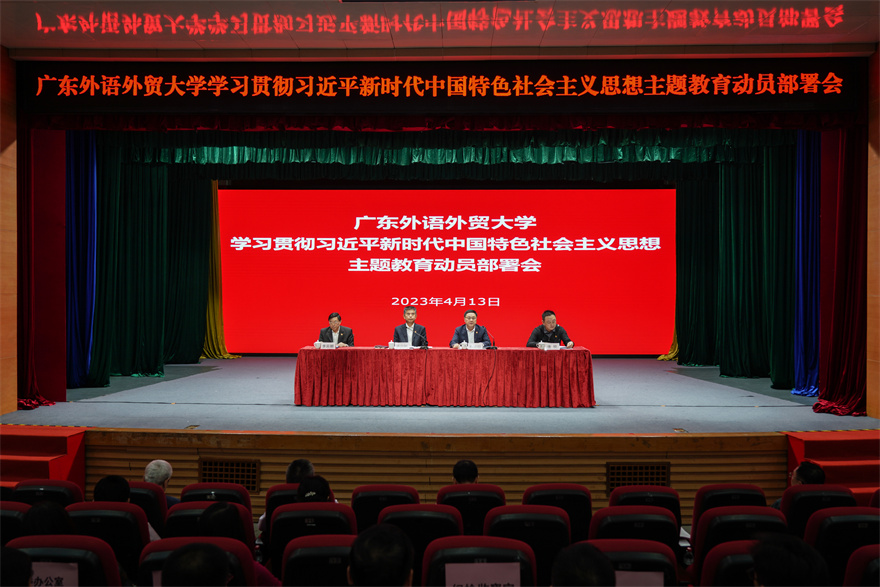 本网讯 4月13日下午,我校在白云山校区六教报告厅召开学习贯彻习近平新时代中国特色社会主义思想主题教育动员部署会,对学校开展主题教育进行全面动员部署。省委主题教育第二十巡回指导组组长李大胜作指导讲话,我校党委书记、校长石佑启主持会议并作动员部署讲话。