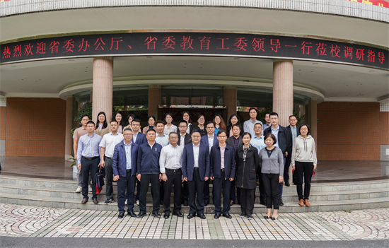 本网讯 4月11日上午,省委办公厅、省委教育工委一行11人来我校调研,并在行政楼第一会议室召开省委教育工委基层党组织规范性文件备案试点工作推进会。省委法律顾问、校党委书记、校长石佑启在迎宾厅与调研组一行进行了深入交流。