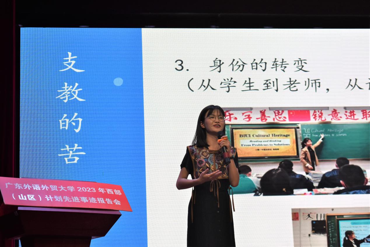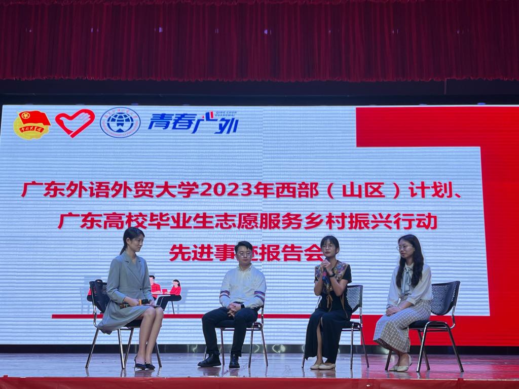 本网讯 为积极推动大学生志愿服务西部计划、广东大学生志愿服务山区计划,加强同学们对于西部计划项目的认识,鼓励更多广外学子以优秀志愿者为榜样,扎根西部,服务西部。4月13日下午,我校2023西部(山区)计划先进事迹报告会暨宣讲会在大学城校区学生活动中心多功能报告厅召开,校团委相关负责人、第七届研究生支教团新疆分队队长陈懿婷、西部计划全国项目志愿者伍云龙、乡村振兴行动志愿者杨慕冰出席宣讲会。大会通过线上和线下形式同步进行,超过1000名学生参加报告会。