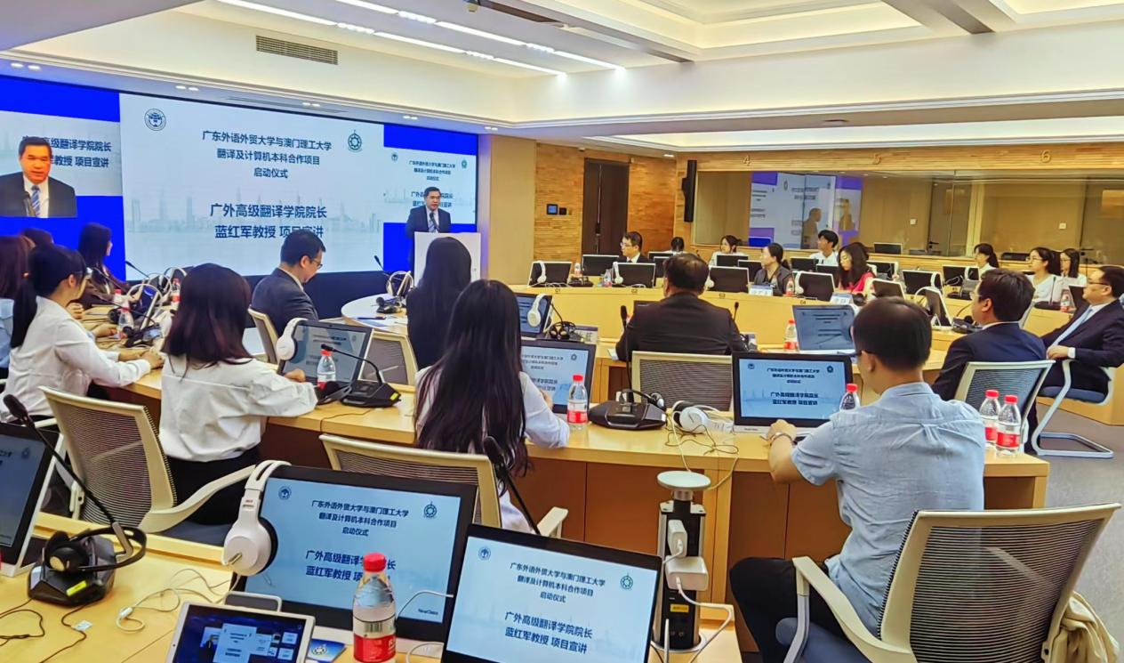 据悉,广东外语外贸大学与澳门理工大学合作举办的翻译专业本科教育项目是2023年首次招生。项目计划在广东省招100人,高考首选科目历史或物理均可,对再选科目不做要求。学费标准为70,000元/生/学年。项目以语言科学与人工智能学科交叉融合为特色,培养适应全球数字化转型需要的高素质、跨学科、融通型语言应用技术类拔尖创新人才。项目采取“3+1”“文理双学位”模式。学生在大三下学期和大四上学期赴澳门理工大学学习,毕业时符合相关条件,可获得广东外语外贸大学翻译专业本科毕业证、文学学士学位证及澳门理工大学理学学士学位证。澳门理工大学合作学术事务部部长张咏蓝、应用科学学院课程主任王雅鹏,我校教务部副部长唐静、港澳台事务工作部副部长徐艺青等参加活动。