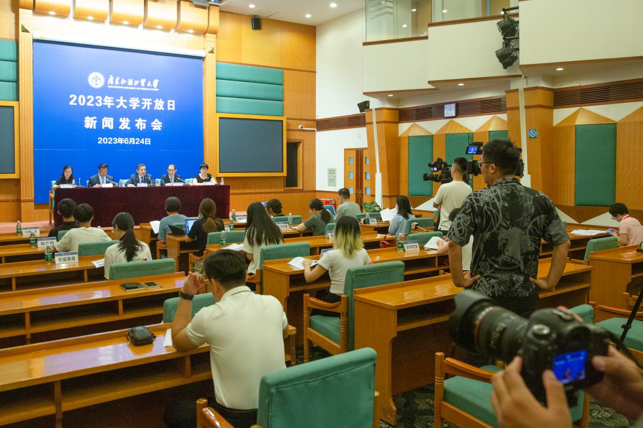 本网讯 6月24日上午,我校大学开放日新闻发布会在白云山校区行政楼国际会议厅举行,校党委常委、副校长焦方太介绍学校2023年普通高考招生政策和招生基本情况。校党委常委、宣传部部长申明浩主持发布会。新闻发布会吸引了中央、省内十余家主流媒体记者前来采访报道。