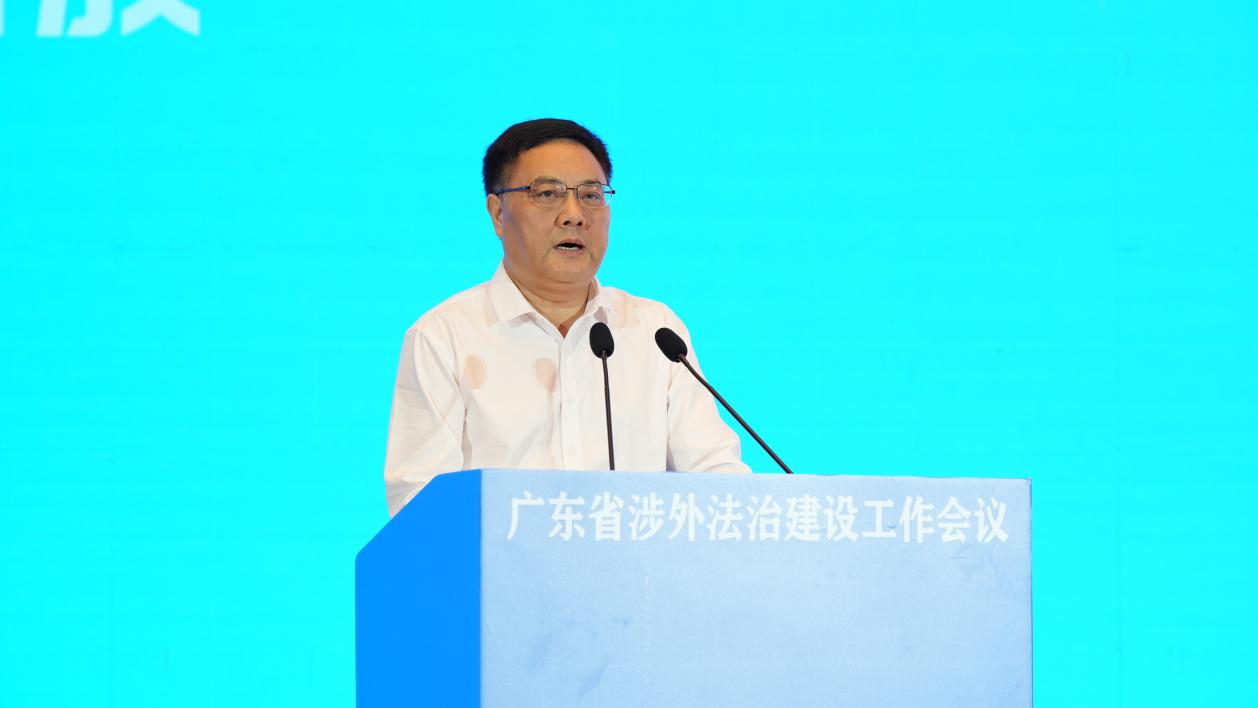 本网讯 7月19日,广东省涉外法治建设工作会议在广州召开。会议深入学习贯彻习近平总书记关于统筹推进国内法治和涉外法治的重要论述精神,谋划开创广东涉外法治建设新局面。省委依法治省办主要负责人出席会议,并对广东加强涉外法治建设工作提出具体要求。我校党委书记、校长石佑启出席会议并作主旨报告。中央依法治国办、司法部、最高人民法院、香港中联办,澳门中联办,广东省有关单位,港澳法律界有关人士,有关企业代表,有关法律服务机构和人员等400多位嘉宾代表参加会议。