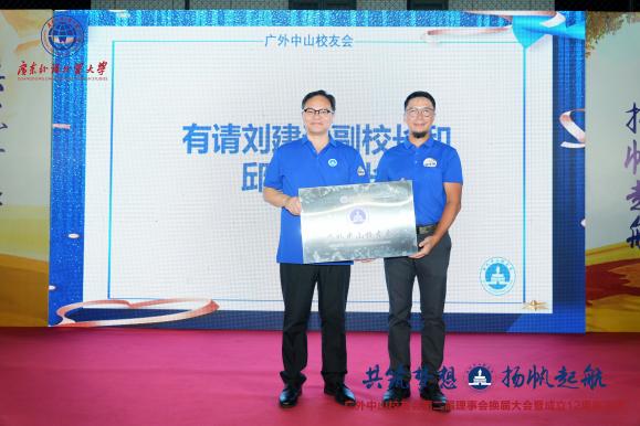 刘建达代表广外发表寄语,对中山校友会的顺利换届表示祝贺,并分享了广外这些年在各方面取得的成绩,表示广外为各位敞开胸怀,希望大家常回家看看。