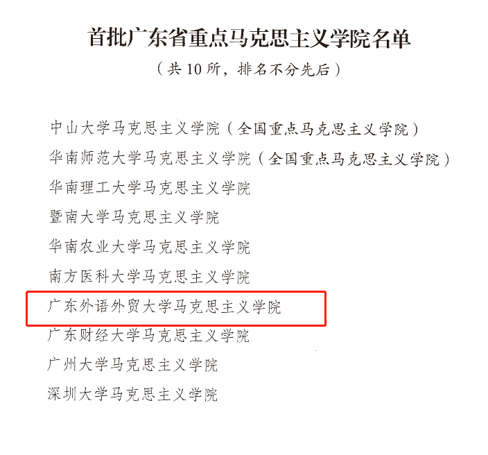 本网讯 近日,广东省教育厅公布了10所首批广东省重点马克思主义学院,我校马克思主义学院入选首批省重点马克思主义学院。