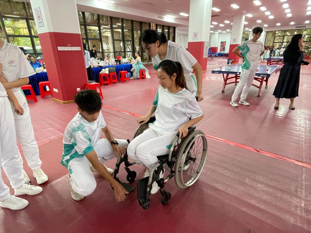 为保障活动的顺利开展,应组委会需求,在共青团广东省委员会的支持指导下,我校团委积极配合团市委,组织遴选了8名综合素质好、服务水平高的志愿者,在仪式期间协助舞台仪式引导、残疾人运动员一对一接待、信息咨询、嘉宾接待等服务,志愿者以饱满的精神、专业的服务展现了广外青年志愿者的风采。
