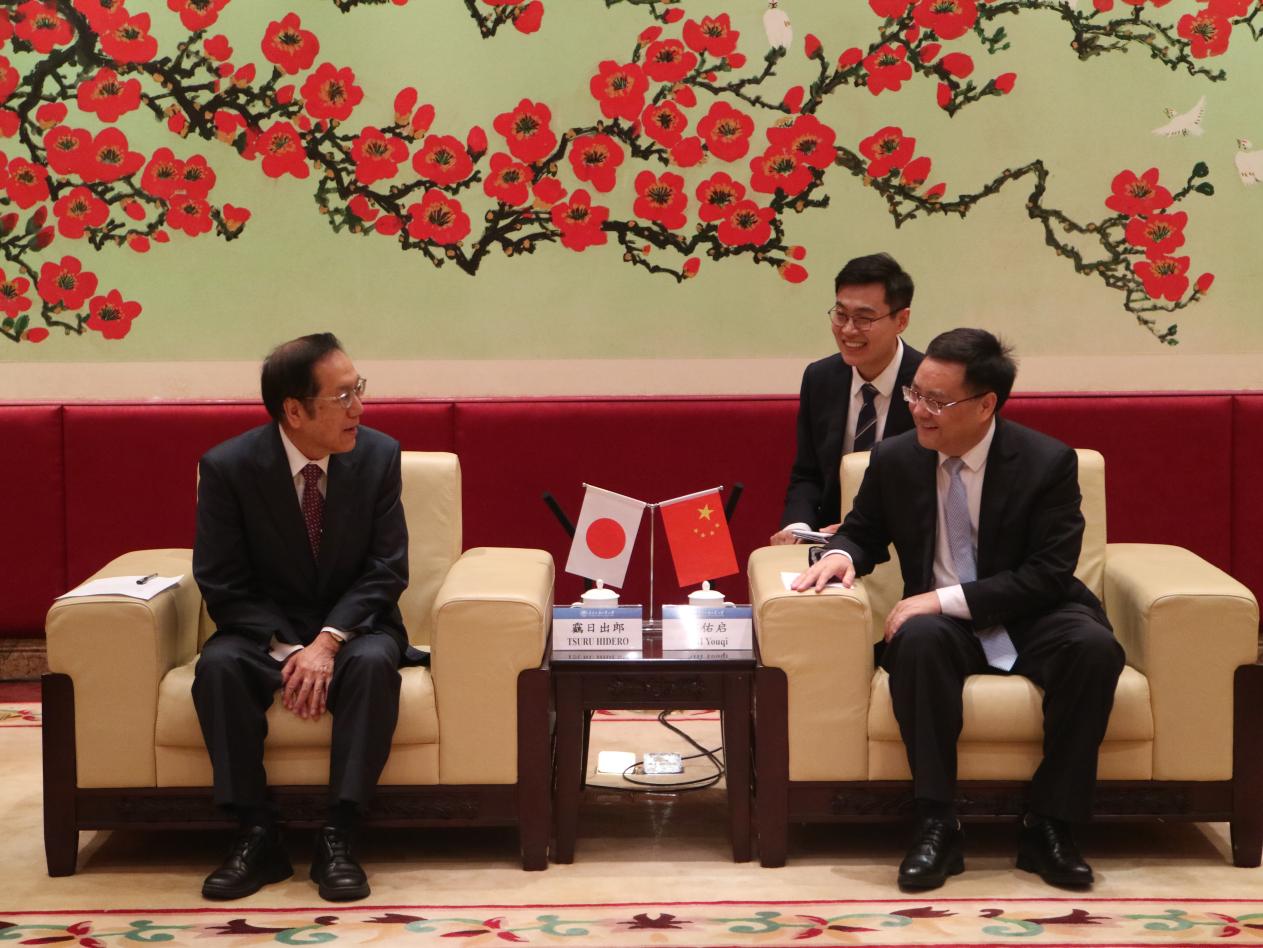 本网讯 10月20日上午,日本札幌大学副校长靏日出郎(TSURU HIDERO)一行来访,我校党委书记石佑启在白云山校区行政楼贵宾厅会见来宾。双方就加强交流合作等交换意见。