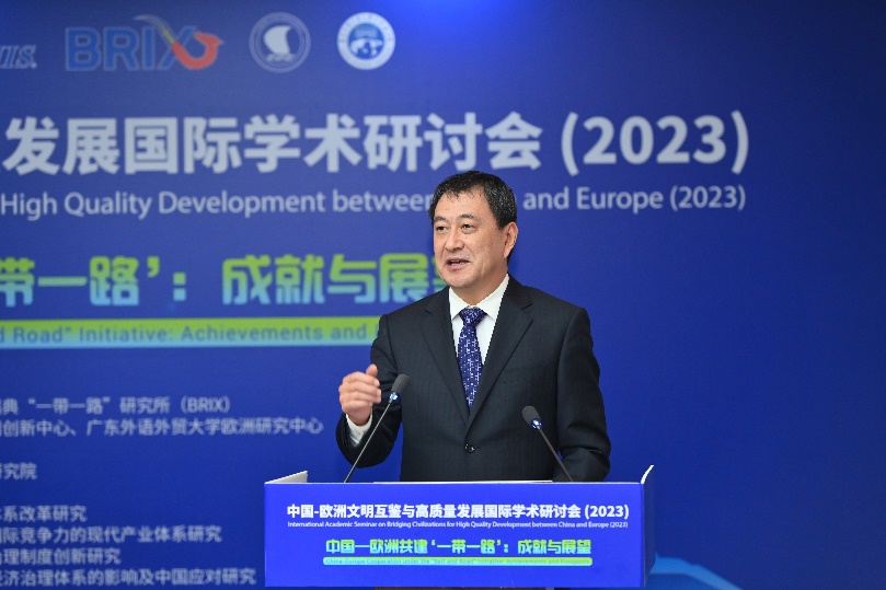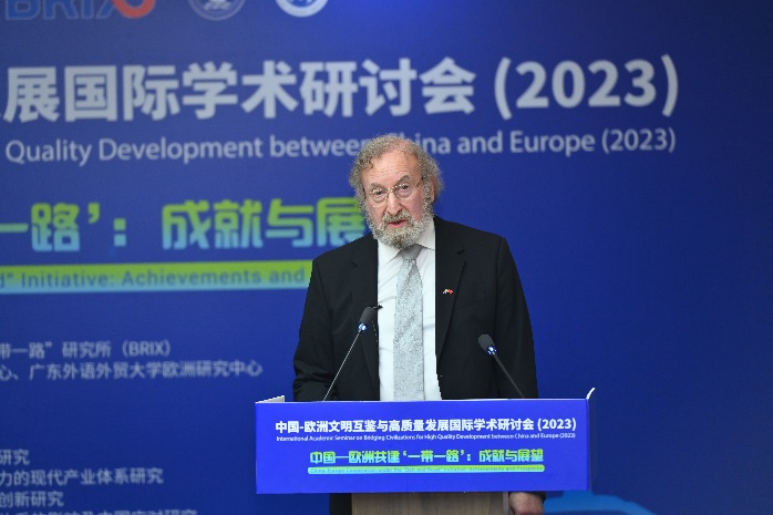我校原党委书记、原校长、广东国际战略研究院院长隋广军教授在开幕致辞中表示,中欧自古以来通过丝绸之路紧密相连,双方不存在地缘政治矛盾或重大利益冲突,并且在全球治理、气候变化、网络安全等方面有着广泛的共同利益。中欧可以进一步深化交通、能源、数字化和网络的跨境连通,共建数字丝绸之路和绿色丝绸之路,在第三方市场合作中释放合作红利。
