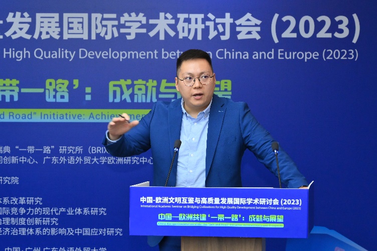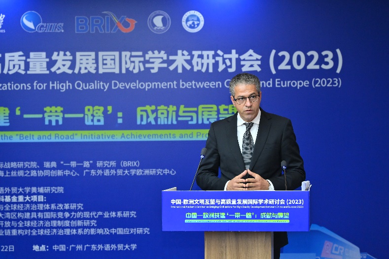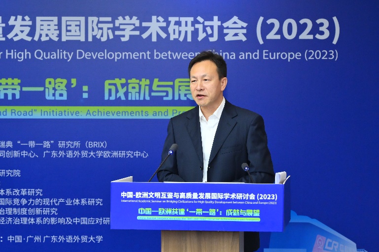 本网讯 10月22日,中国-欧洲文明互鉴与高质量发展国际学术研讨会在广州召开。本次会议以“中国-欧洲共建‘一带一路’:成就与展望”为主题,由广东国际战略研究院、瑞典“一带一路”研究院、21世纪海上丝绸之路协同创新中心和我校欧洲研究中心联合主办,由我校黄埔研究院承办。与会人士围绕共建“一带一路”倡议提出十周年来所取得的巨大成就、国际贡献及未来展望展开了热烈讨论,并从政治、经济、社会人文等不同角度为中欧进一步深化文明交流与合作提出了积极建议。