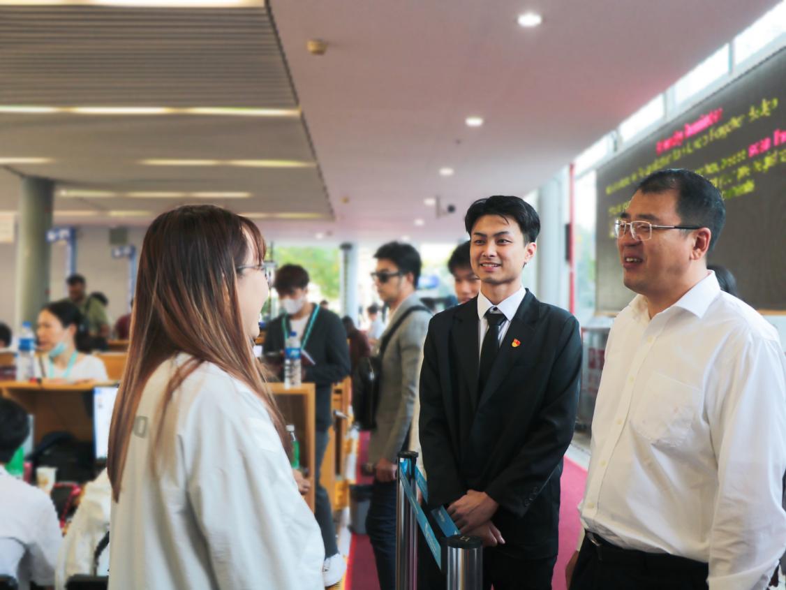 会谈后,闫相斌一行参观了广交会发展史陈列馆,并先后来到境外贵宾俱乐部、展馆咨询处、境外采购商办证大厅等工作岗位走访,看望慰问实习学生。期间,闫相斌与同学们亲切交流,听取了实习学生参加本届广交会实习的感受和收获,勉励大家以饱满的热情、扎实的知识、专业的能力投入到实习工作中,展现广外学子良好的精神风貌和综合素质。