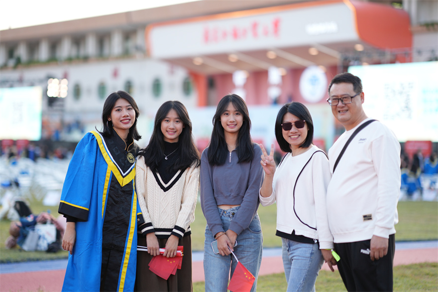 校友代表、英文学院2021届毕业生张冉细数在广外的奋斗与成长时光,向母校、父母、师长、挚友表达感恩之情。她表示,广外是我们一生中永远的家,不仅要常回家看看,也要常和旅人讲讲我们的家,期待下次再相聚。