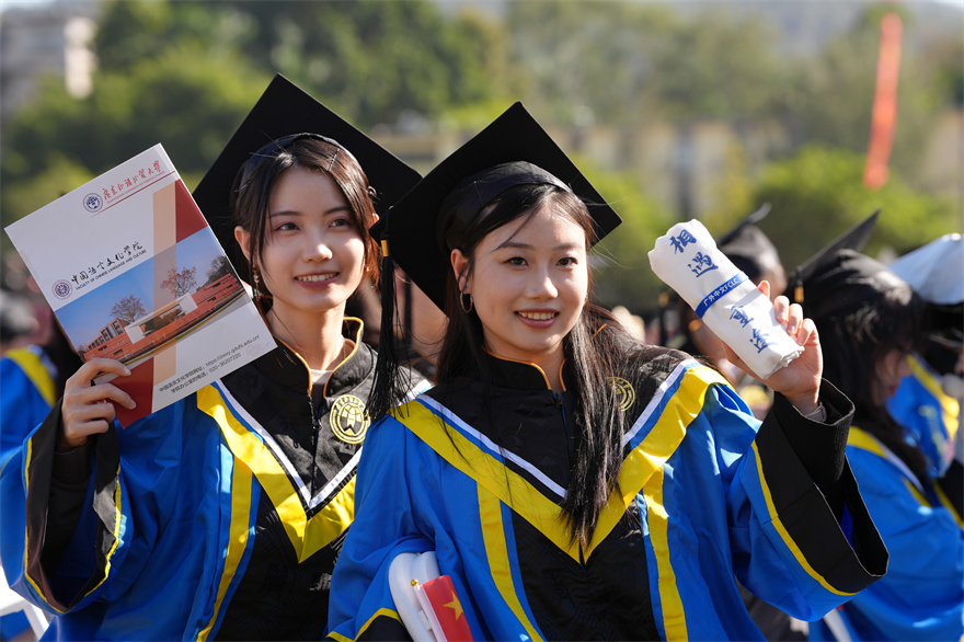 本网讯 金秋时节,重逢有期。11月18日下午,白云山校区综合体育场格外热闹温馨,学校在58周年校庆之际郑重兑现承诺,为2020届、2021届毕业生补办了一场盛大的学位授予仪式。4200余名校友跨越山海,再聚云山,与母校“双向奔赴”,共赴这场青春之约。校党委书记石佑启,校长闫相斌,校领导、主礼教授为毕业校友拨穗授礼并合影留念,寄语同学们不忘广外路、坚守广外心、赓续广外情,续写更加精彩的人生华章。