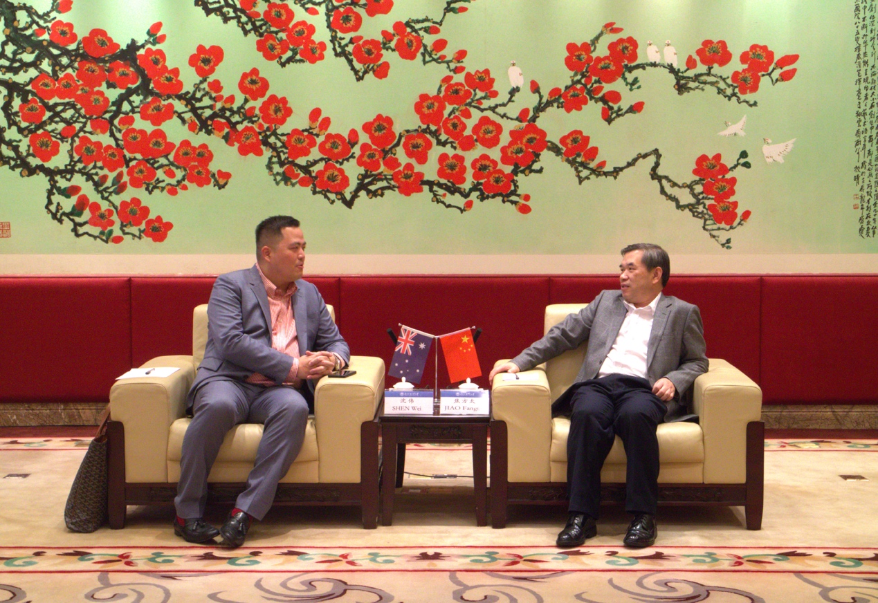 本网讯 11月21日上午,澳大利亚迪肯大学副校长沈伟来访我校,我校副校长焦方太在白云山校区行政楼贵宾厅会见来宾。双方就国际化办学经验、深化校际合作等交换意见。