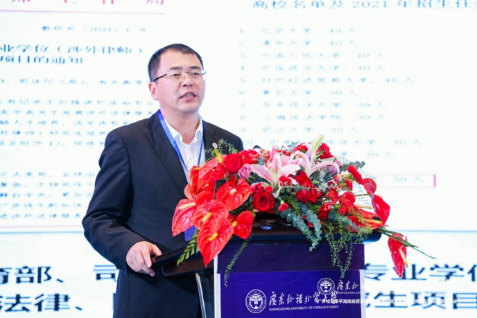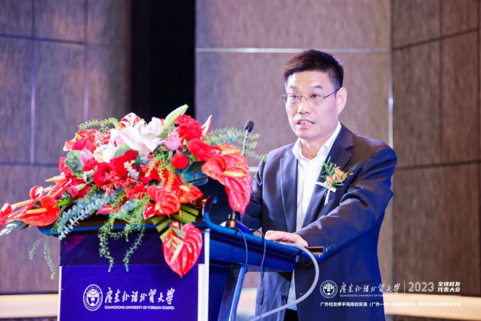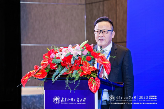 我校副校长刘建达教授代表广外向与会的领导及校友代表致以亲切问候,并对为此次活动无私奉献的校友们表达衷心感谢。刘建达指出,得益于《海南自由贸易港建设总体方案》的颁布,海南岛成为投资兴业的热土,呼吁全球广外人把握机会,发挥广外所能,积极为建设有中国特色的海南自由贸易港作出广外贡献。刘建达强调,自共建“一带一路”倡议提出十年来,广外坚持培养服务国家战略的高层次人才,持续提出广外方案,贡献广外智慧。他殷切期望各位广外校友借海南自贸港和粤港澳大湾区的发展机遇,积极融入国家发展战略,在各行各业发光发热!