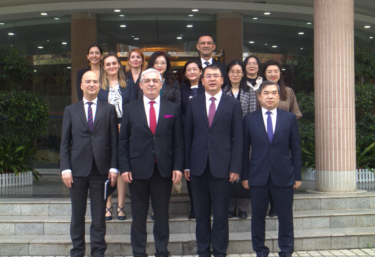 闫相斌对代表团的来访表示欢迎,并对我校国际化办学特色、土耳其语专业建设情况等进行详细介绍。他表示,我校是广东省高水平大学重点建设高校,具有鲜明的国际化特色,是华南地区国际化人才培养、外国语言文学、全球经济治理、涉外法治研究和中华文化国际传播的重要基地。学校土耳其语专业是华南地区唯一的土耳其语教学点,是广东省省级一流本科专业建设点,学校重视与土耳其高校、学术机构的交流合作。此次大使一行的来访,为推动中土高等教育深入合作、人才培养再出硕果提供了新契机。未来,我校希望与土耳其高校和机构在师生互访、人才培养等方面加深合作,为两国文化交流培养更多高素质人才,共促中土文化、语言、经贸等领域合作再创佳绩。