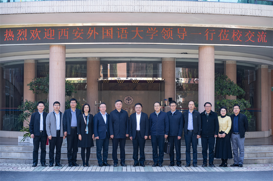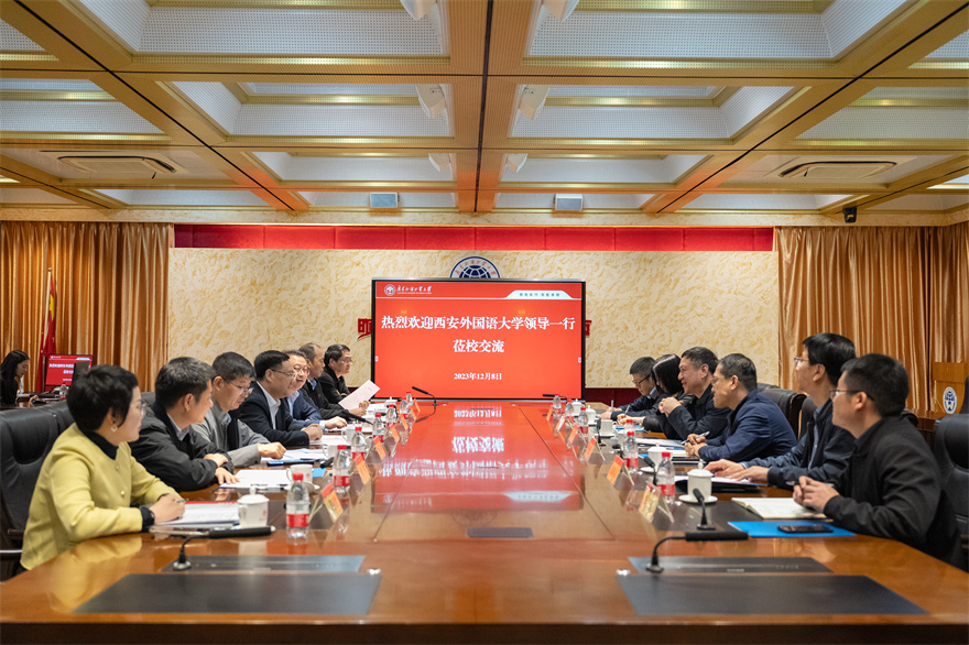 本网讯 12月8日上午,西安外国语大学党委书记白黎率队来我校交流,我校党委书记石佑启在白云山校区行政楼第一会议室与西安外国语大学一行座谈交流。