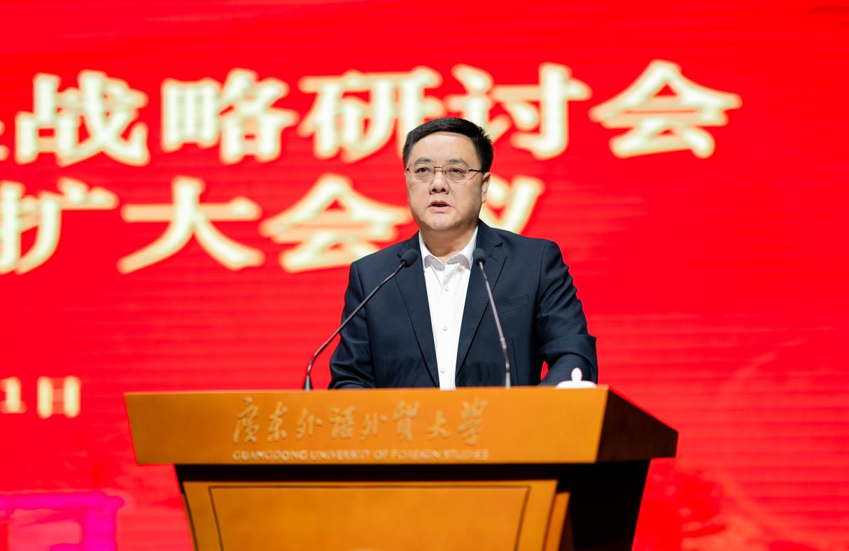 在主题报告中,闫相斌回顾了我校近年来取得的一系列成绩,并从国际格局变化、经济社会发展、高等教育发展和学校自身等多个层面,深入分析研判了学校发展的“时”与“势”。闫相斌指出,近年来,学校学科整体实力加速提升,总体呈现出高峰稳固、高原并起的态势;育人质量和特色持续强化,在创新国际化人才培养模式方面取得积极进展;师资队伍建设稳步推进,高层次人才的集聚效应日益凸显;科研实力不断精进,成为发展势头最强劲的优势领域;教育国际化工作克服不利因素影响,保持有序开展。闫相斌指出,面对国家和社会对外语类人才的新需求,形成新的发展动能,是学校实现“动力变革”的必然选择;推动现有资源深度整合,增强学校发展的“组织性”,是实现学校“效率变革”的内在要求;形成人才培养的鲜明特色,切实提升人才培养成效,是推动学校“质量变革”的迫切需求;在服务国家和地区重大需求中成就自身发展的新高度,是学校实现高质量发展的必由之路。