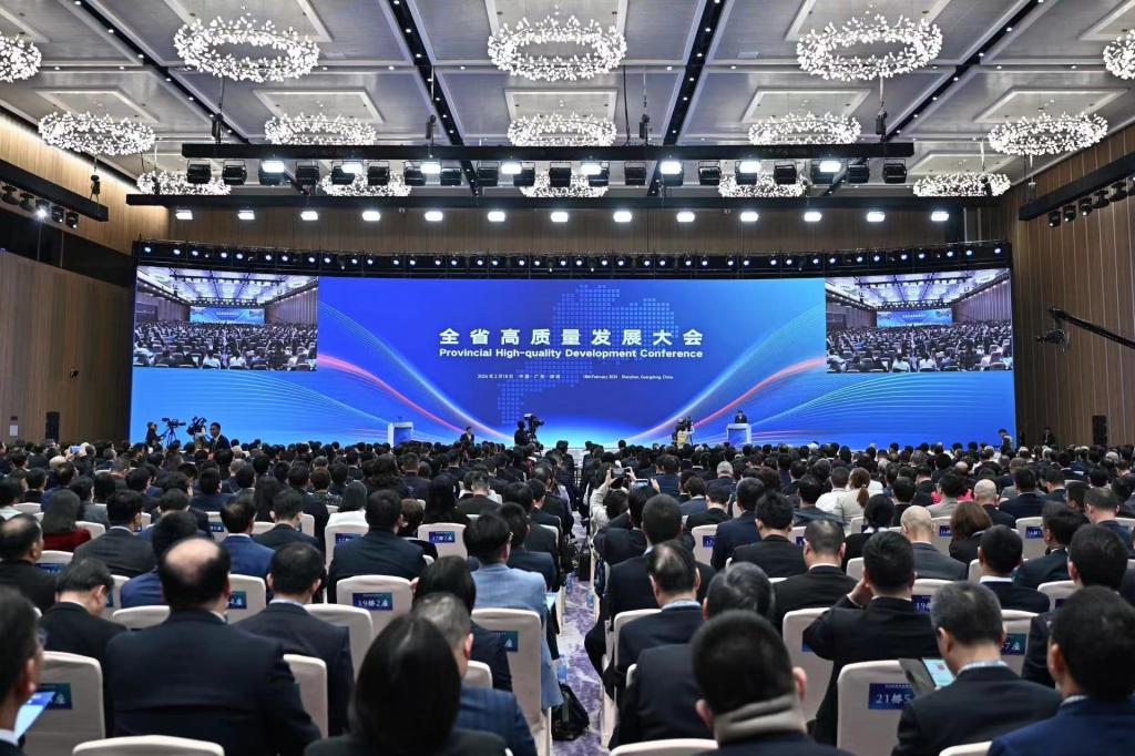 据悉,2月18日,广东省委、省政府召开全省高质量发展大会,聚焦产业科技话创新、谋未来,不断夯实实体经济为本、制造业当家的根基,持续推动高质量发展。广东省委书记黄坤明在大会上发表讲话,强调要深入学习贯彻习近平总书记视察广东重要讲话、重要指示精神,坚定不移走好高质量发展之路,抓住科技创新这个“牛鼻子”,把创新落到企业上、产业上、发展上,奋力建设一个靠创新进、靠创新强、靠创新胜的现代化的新广东,以优异成绩向新中国成立75周年致敬。广东省委副书记、省长王伟中主持会议。