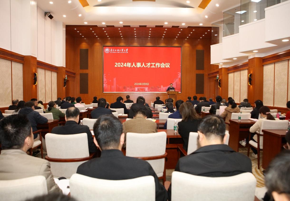 本网讯 3月8日上午,我校2024年人事人才工作会议在白云山校区国际会议厅举行。校党委书记石佑启、校长闫相斌、副校长申明浩,各教学单位院长(主任)、书记,党政群部门、科研单位、教辅机构主要负责人,以及人力资源部(教师发展中心)全体工作人员等参加会议。会议由闫相斌主持。
