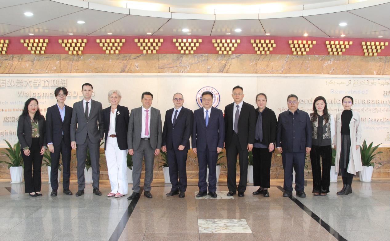 福希玮对我校的热情接待表示衷心感谢,并高度评价了广外在人才培养和法语专业建设等方面所取得的成就。他指出,今年是法中正式建交60周年,也是法中建立全面战略伙伴关系20周年,两国在经贸、教育、文化等领域的交流合作日益紧密。他期待未来能进一步深化与广外的合作,助力加强法国高校和机构与我校的联系,共同推动中法教育合作高质量发展,取得更多务实成果,为增进法中两国友好交流作出更大贡献。