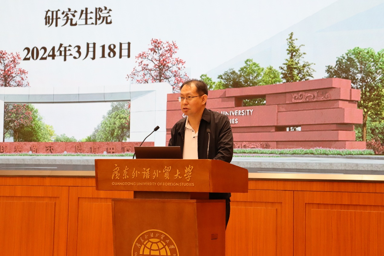 研究生院院长杨励从学位授权体系优化、研究生生源质量提升、高质量创新成果产出、“多语种+”复合型人才培养、国际化人才培养集群建设、导师岗位管理强化和研究生人才培养体系完善等七个方面总结回顾了2023年研究生教育工作。同时,2024年学校将从五个方面着力推进研究生教育高质量发展:一是因应需求,扎实推进学位点建设高质量发展;二是深化改革,健全多元化招生选拔机制;三是加大力度,建设高质量研究生人才培养体系;四是扩大合作,推进研究生国际化项目向纵深发展;五是立德树人,着力构建卓越研究生导师队伍。此外,针对即将开展的2024年硕士研究生复试工作进行了布置。