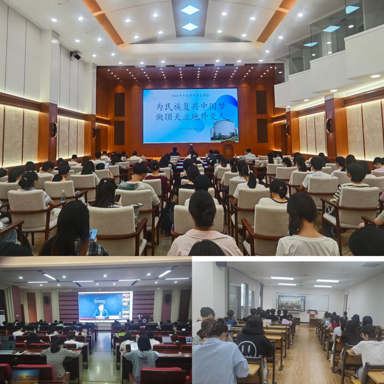 宣讲会上,中国驻马里大使、我校82级校友陈志宏通过线上连线方式,为同学们开展专题讲座。他结合近年来中国外交的发展历程,解读了当前的国际形势、全球发展面临的挑战,并强调了外交人员应忠于党、忠于国家、忠于人民,政治坚定、业务精湛、作风过硬、纪律严明等能力素质要求,希望大家坚定理想信念,努力学习专业知识,快速提升综合能力,为将来职业生涯打好坚实基础,鼓励和欢迎大家积极投身外交事业,实现人生目标。