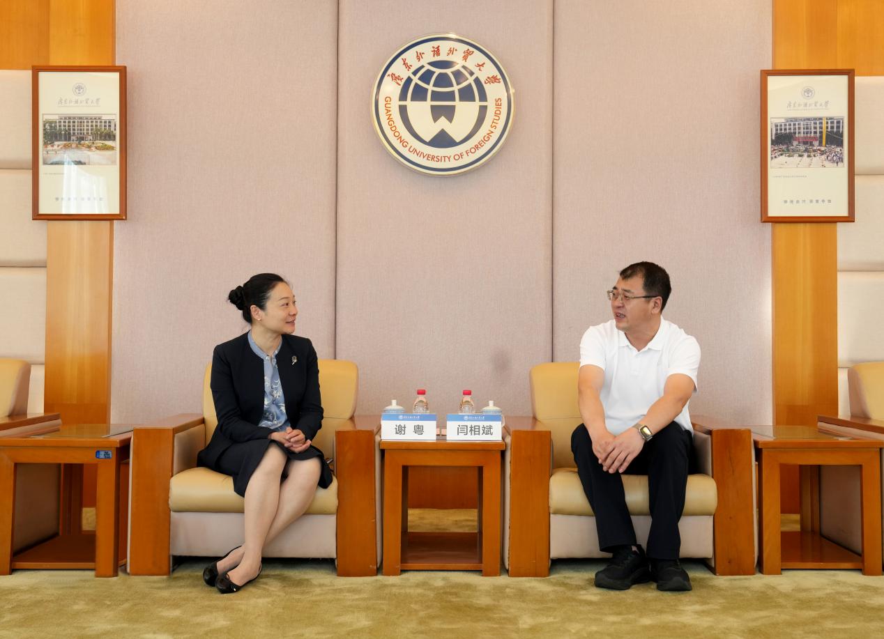 闫相斌对外交部长期以来对我校外交人才培养工作的关心和支持表示感谢。他指出,学校持续深化“多语种+”交叉融合型人才培养项目,着力培养具有家国情怀、国际视野、过硬本领、创新能力、担当精神的高素质复合型国际化人才。希望外交部与学校能够加强合作,对学校的专业建设、学生发展给予更多指导和支持。外交部干部司谢粤参赞高度肯定了我校在外交人才和国际组织人才培养方面所取得的成果,她表示,人才是国家发展的重要战略资源,希望此次访问能够进一步深化彼此的合作交流。