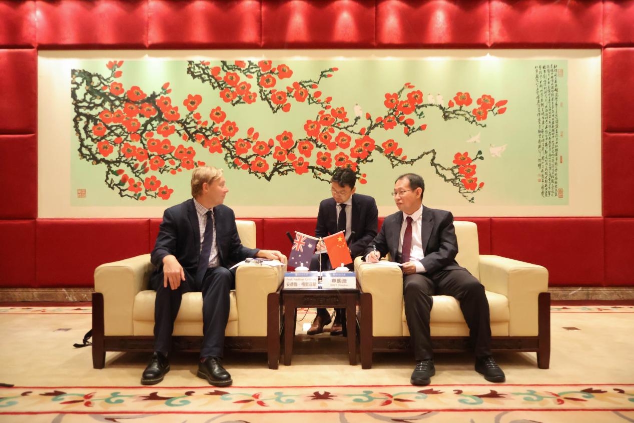 申明浩热烈欢迎代表团的到来,并介绍了广东外语外贸大学的基本情况。他指出,广东外语外贸大学是广东省高水平大学重点建设高校,目前是华南地区国际化人才培养、外国语言文学、全球经济治理、涉外法治研究及中华文化国际传播的重要基地。他提到,广外的外国语言文学是中国顶尖学科,并且广外有多个学科居全国前列。广外大力推动国际交流合作,实施“国际交流合作PRIME”计划,推动国际化高端合作平台构建,国际化人才培养模式创新、国际学术研究的合作等方面的建设。他表示,希望能够基于广外与昆士兰大学的良好的合作基础,进一步扩展双方的合作领域,提高合作的深度和广度。