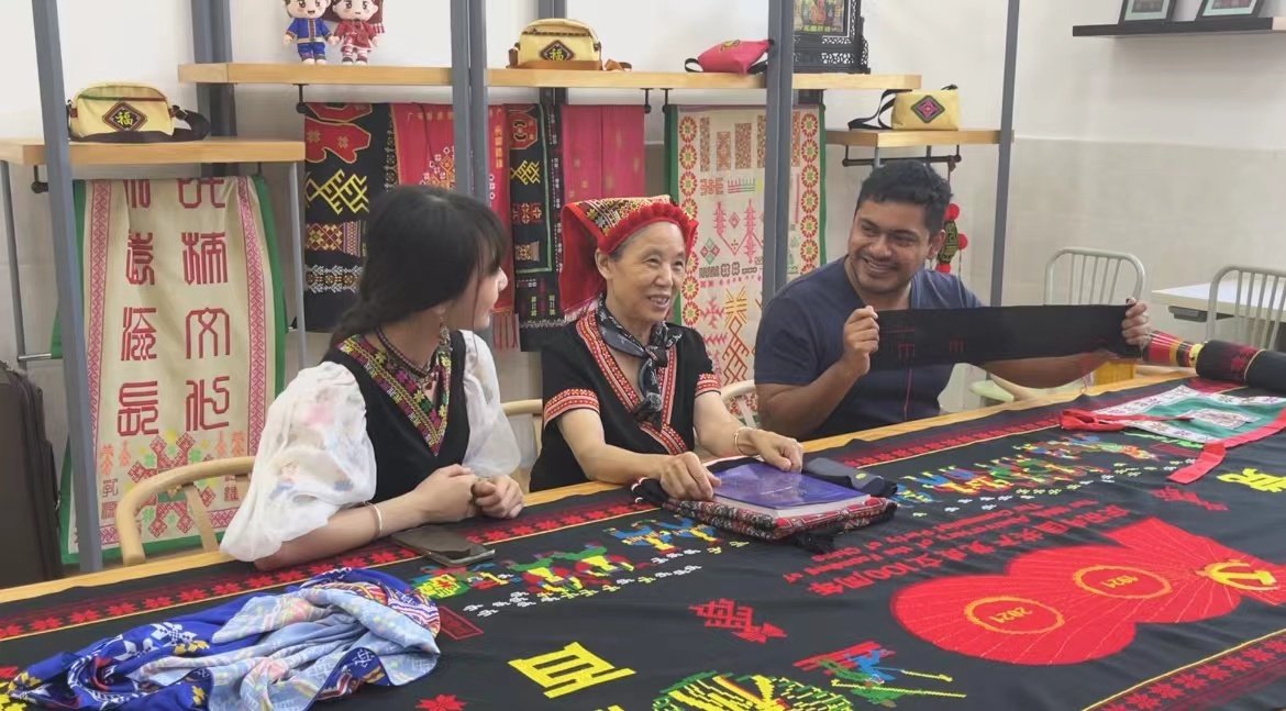 作为乳源当地非遗文化代表之一,瑶绣具有重大的科学、实用和艺术价值。然而,随着当地劳动力的流失,加上瑶绣绣法多变难以上手,手工刺绣服饰因其耗时耗力和价格较高难以销售等因素,瑶绣技艺面临着失传的困境。为了让瑶绣重新“走出来”,实践队邀请了墨西哥留学生张睿墨拍摄瑶绣视频《您的瑶绣体验官——成就大挑战》。在拍摄过程中,张睿墨以挑战任务的形式,用瑶语自我介绍,参观世界过山瑶博物馆以及体验瑶绣特色“反面绣”。他流利的中文,温暖的笑容,还有视频最后的那一句瑶语的“我爱乳源”让实践队会心一笑。相关国际体验官作品成果在国际在线、南方英文网等平台发布,这是青年在青山间留下的特殊足迹。