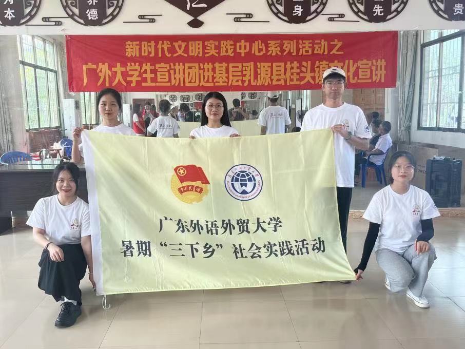 除了将乳源当地的特色文化传统带到广州,广外青年师生还到乳源感受当地文化。2023年暑假,韶关乳源实践队来到乳源县融媒体中心实习,协助乳源县融媒体中心工作的同时,对乳源当地的非遗文化进行调研,并结合当下热点拍摄短视频宣传瑶族服饰文化。